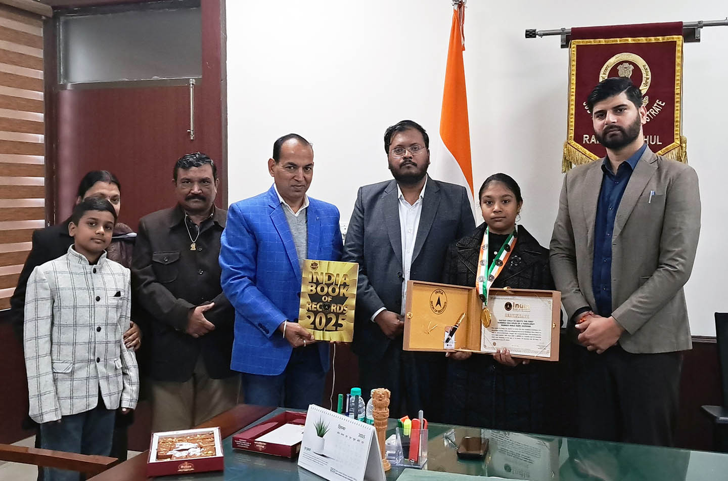Apeksha set a new world record as the fastest to solve 50 cube values, completing the task in just 96 seconds. She was honored for this achievement by Mr. Showkat Ahmad Parray, Deputy Commissioner of Bathinda.